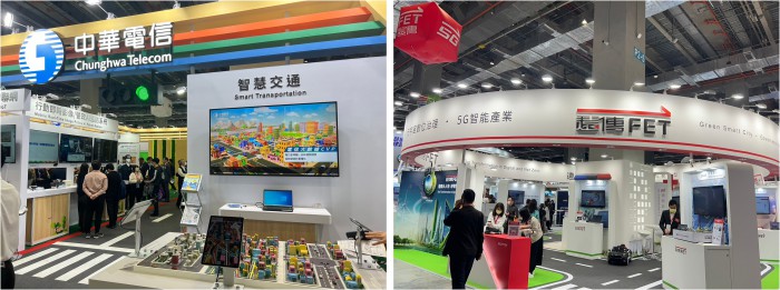 中華電信此次展項「智慧交通」透過電信大數據-即時交通資訊服務來分析雍塞時間與發生地點,提供交通策略研擬之數據源參考,有效改善車潮壅塞問題。並在2023年智慧城市展中的智慧交通領域獲得創新應用獎。 遠傳電信今年以「遠傳大人物 淨零數位雙轉型」為主題,展出逾20項創新科技應用。另像微電網、號誌不斷電系統、智慧路口、智慧充電等解決方案,已協助各地縣市政府進行智慧治理,應用領域橫跨交通、能源、醫療、製造、建築等,展現遠傳領先業界創新實力。