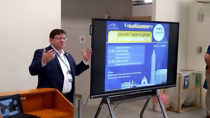 圖2:11月6日OmniAir Plugfest測試活動於亞東科技大學淡水校區開幕,OmniAir執行董事Jason Conley致歡迎詞。