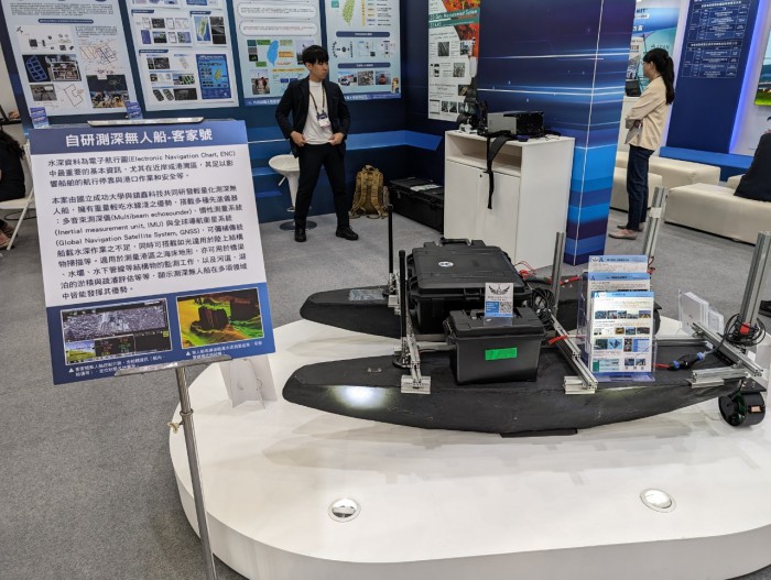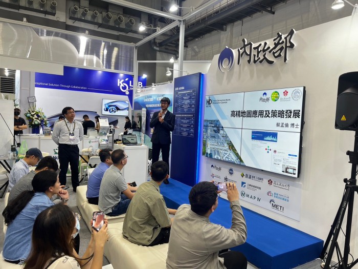 在今年的車聯網主題館中,還有一個非常給力的單位-內政部參與!集結了7家廠商共襄盛舉,不僅展示其科研成果,如內政部自主研發慣性導航系統-EGI-M370D,透過嵌入式硬體及無人機專用介面設計,提升機體穩定性及降低耗能;軟體部分透過時間同步和運動模型約制等演算法技術,提供高精度、高穩定性及低成本之慣性導航系統,更別出心裁地將展位設計出講台和聽講空間,舉辦主題演講,邀請各廠商分享自身產品。亦實體展出內政部委託成大及鎮鑫科技自主研發的無人船-客家號,加深參展者印象,也大幅增加與參展者的互動,更添車聯網主題館光彩。