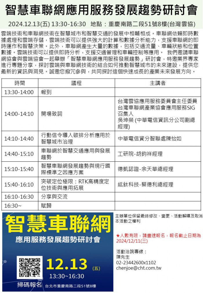 12/13 「智慧車聯網應用服務發展趨勢研討會」