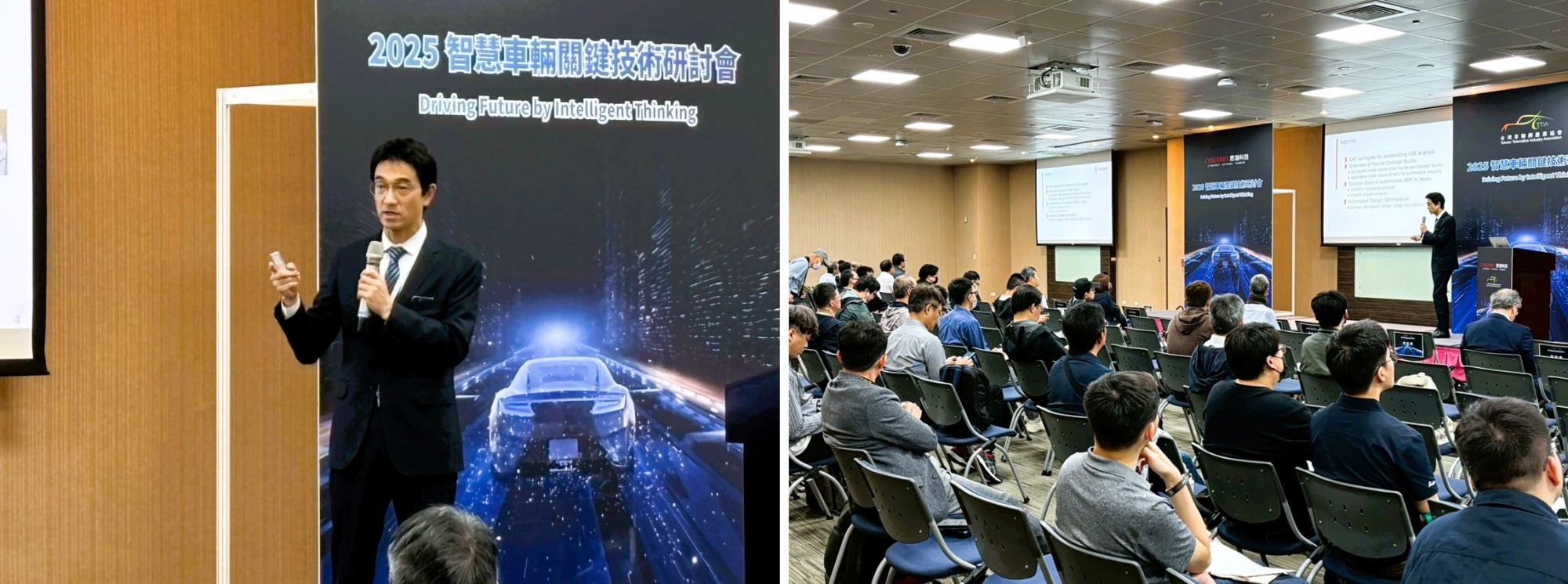 在本次研討會上午最後一段議程,思渤科技特地邀請到母公司 CYBERNET SYSTEMS 的經理 Arata Hayashigaki先生,介紹日本車輛開發階段中模擬與代理 AI 技術的應用實踐,講述模擬技術與 AI 在日本車輛開發流程中的實際應用。CYBERNET SYSTEMS 於今年將邁入 40 周年,長期服務 TOYOTA、HONDA、SUBARU 等知名汽車大廠,具備深厚的車輛模擬技術與實務經驗。