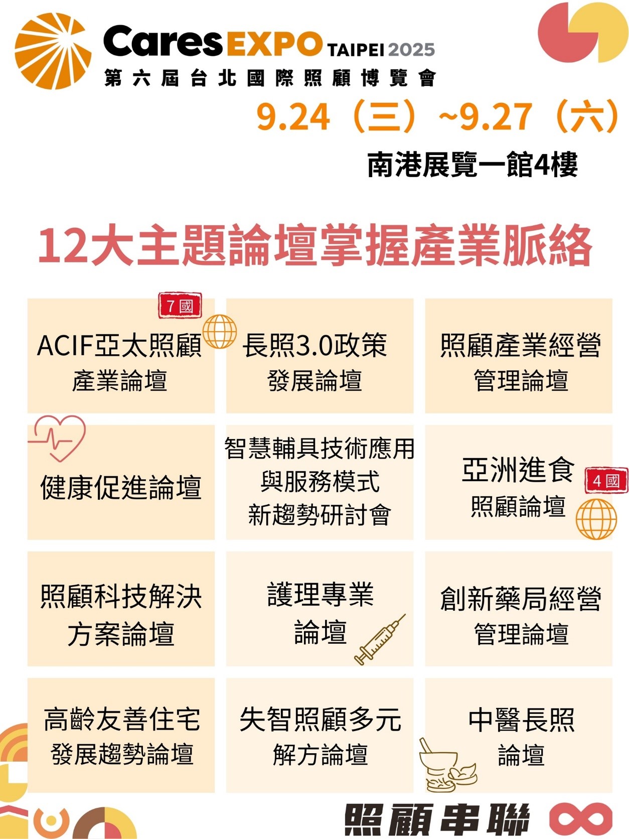 金量超高,年年口碑爆棚的【2025 台北國際照顧博覽會論壇】,席次熱烈開放中,立即搶先卡位,別錯過年度盛會!