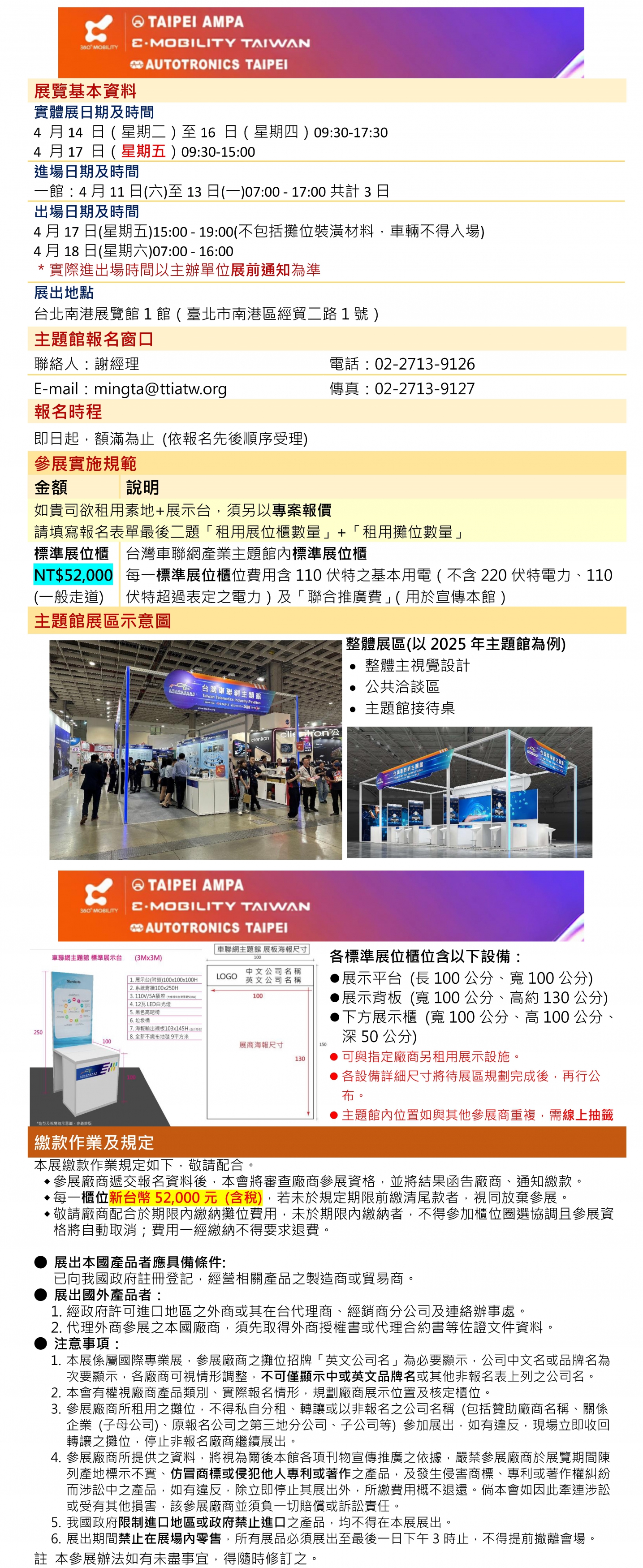 展覽聯絡窗口:TTIA 謝經理 Tel:02-27139126 / Email: