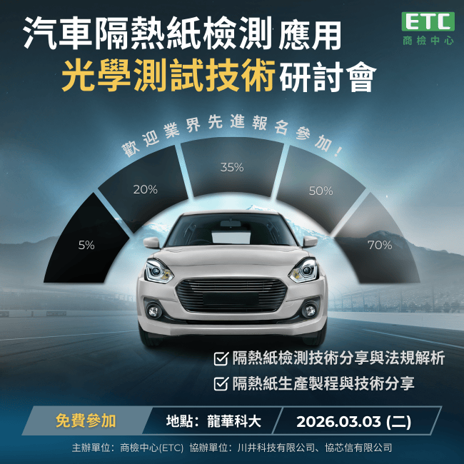 主辦單位: 財團法人台灣商品檢測驗證中心 (商檢中心 ETC)